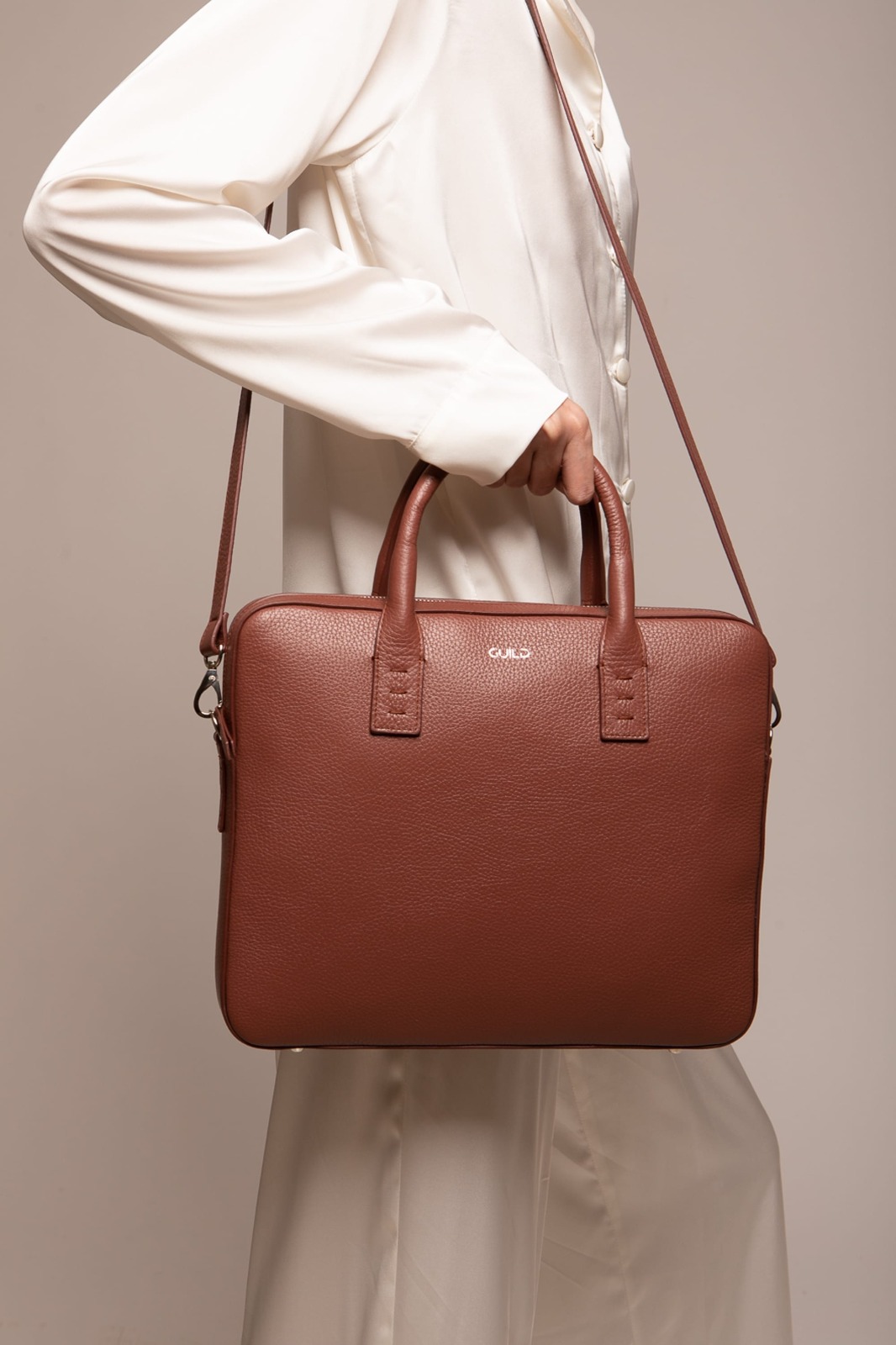 Cartable PC en cuir grainé, spacieux et sécurisé. Poignées confortables et bandoulière amovible pour un porté pratique et élégant. Parfait pour le travail ou les déplacements !
